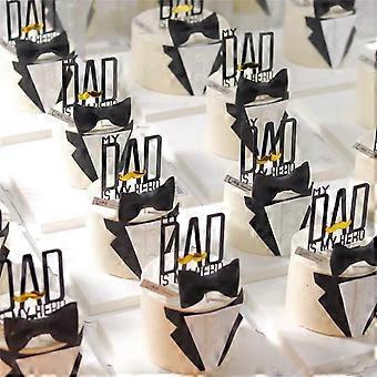 Father's Day Cake Topper My Dad is Hero Black Gold Acrylic Decoration for Dad Birthday Party