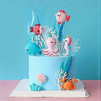 Under the Sea Cake Topper Set with Acrylic and Clay Ocean Animals for 1st or 2nd Birthday Party