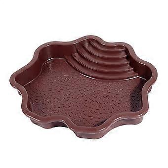 Reptile Water Dish with Ramp, NonSlip Stepped Bathing Pool for Turtle, Lizard, Red Brown