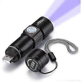 UV Torch Rechargeable Mini LED Black Light 395nm, Zoomable Pet Urine Finder And Stain Detector, BuiltIn Battery