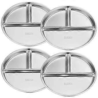 Stainless Steel Divided Dinner Plates Set of 4, 3 Compartment Rust Resistant Easy Clean 8.9in Plates for Kids and Adults