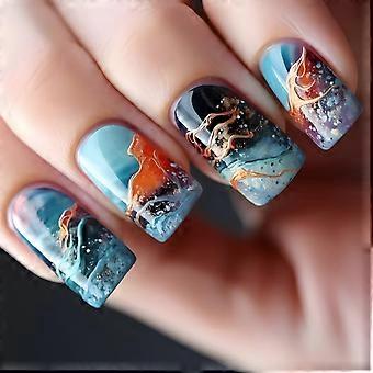 Press On Nails Set with Glue, Reusable Long Acrylic Nail Tips, Glossy UV Finish, 10pcs French Style