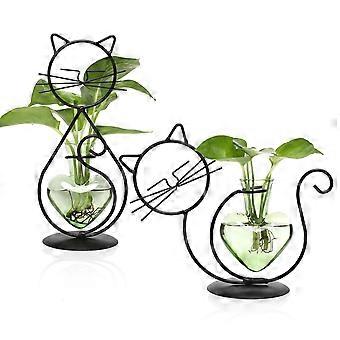 CatShaped Glass Plant Propagation Station with Colored Vase for Home Office Decor and Cat Lovers
