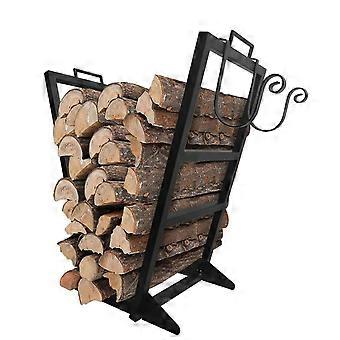 Firewood Rack Wrought Iron Log Holder for Indoor Outdoor Use Black Fireplace Wood Storage
