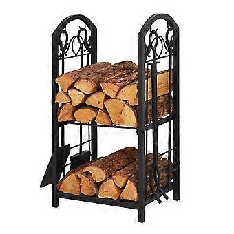 TwoLayer Firewood Rack with Detachable Fireplace Tool Set for Indoor and Outdoor Wood Storage