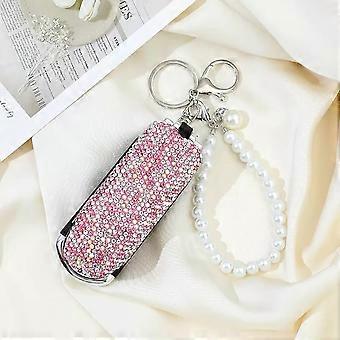 Folding Hair Brush with Mirror Rhinestone Pearl Chain Keychain for Purse and Travel – Pink