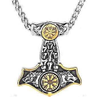 Viking Thor Hammer Necklace Vegvisir & Valknut Pendant