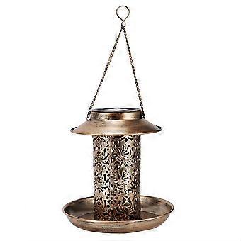 Solar Bird Feeder with Solar Powered Light, Vintage Metal Hanging for Garden Outdoor Decor