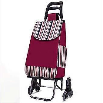 Folding Shopping Cart Stair Climber Trolley with Removable Bag and Quiet Wheels, Red