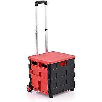 Folding Stair Climbing Cart with Builtin Seat Lightweight Collapsible Grocery Trolley Red