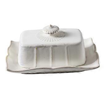 White Ceramic Butter Dish with Lid Elegant Keeper for Kitchen Dining Home and Hotel Use