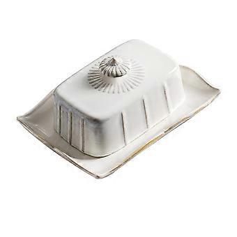 Ceramic Butter Dish with Lid Airtight Vintage Design White Serving Plate for Butter Cheese Snacks
