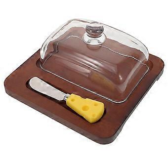 Butter Dish with Lid, Wooden Base and Elegant Glass Cover, Keeps Butter Fresh for Kitchen Table