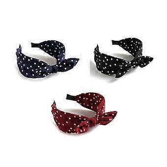 Polka Dot Wide Knot Headband Set Retro Style 3Pack Navy Blue Black Red for Women
