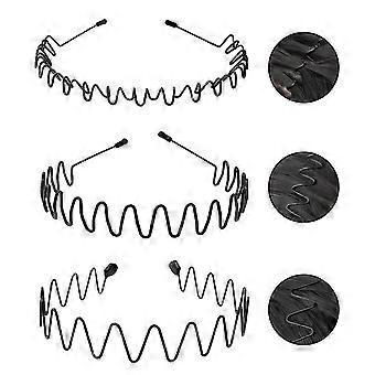 Metal Headbands 3 Pack Adjustable Black Wavy Zigzag Hair Bands for Men and Women Sports Daily Use