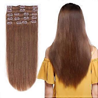 22 Inch Light Brown Clip in Remy Human Hair Extensions 8 Pieces Full Head Thick to End