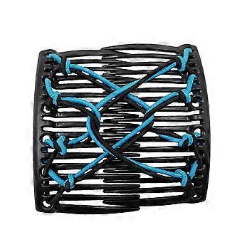 Vintage Double Comb Hair Clip for Women Retro Styling Versatile Elastic Fit for Bun Ponytail Blue