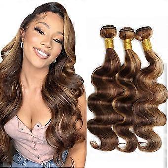 Brazilian Body Wave Human Hair Bundles P4/27 Highlights Chocolate Honey Blonde Weave Extensions 10 12 14 Inch for Black Women