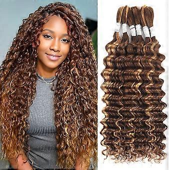 20 Inch Deep Wave Human Braiding Hair Extensions P4/27 Wet and Wavy Bulk No Weft for Boho Braids