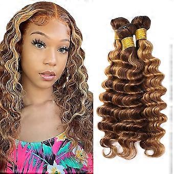P4/27 Highlight Blonde Brazilian Deep Wave Human Hair Bundles 32 Inch Virgin Extensions 3 Pack