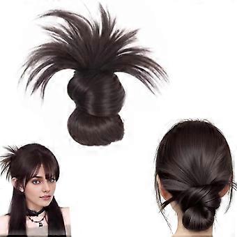 Messy Bun Hair Piece ClipOn Feathered Bun Extension with Claw Clip for Women Brown Black