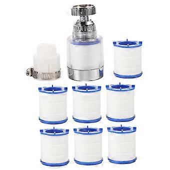 Water faucet filter with splashproof design, compact filter unit, replaceable filter cartridges for sink care, ensures cleanliness.