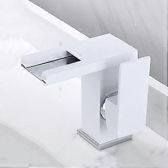 Waterfall Led Lavatory Vanity Faucet 3Color Changing Brass Bath Basin Mixer Hot and Cold SingleHandle 1Hole White
