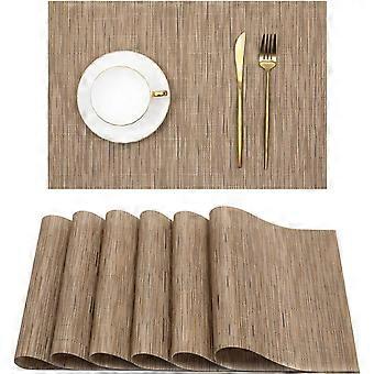 Waterproof Wipe-Clean Place Mats Pack of 6, Washable PVC Non-Slip Heat Resistant Table Mats for Home Dining (Khaki)