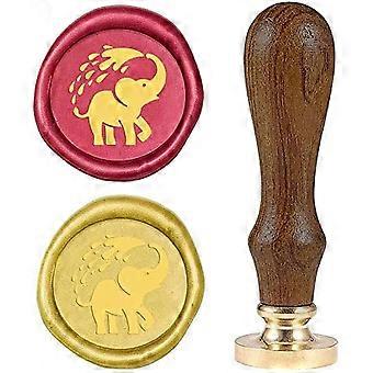 Wax Seal Stamp Elephant Retro Sealing Wax Stamp Animal Pattern with 25mm Removable Brass Head Wooden Handle for Envelope Card Package Decoration