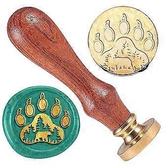 Wax Seal Stamp Set 1Pc Golden Tone Sealing Wax Stamp Solid Brass Head with 1Pc Wood Handle for Envelopes Invitations Gift Card Paw Print 83x22mm