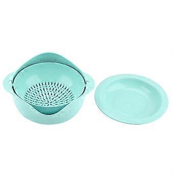 Wheat Straw Rotation Draining Basket Double-layer Hollow Vegetables Drainer Kitchenware L