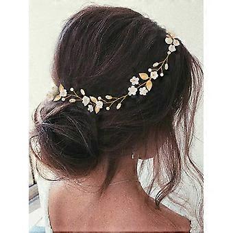 Flower Girl Headpiece Gold Crystal Hair Vine with Pearls for Wedding Birthday Party