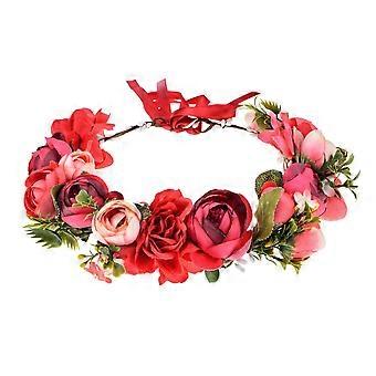Flower Crown Rose Peony Garland Headband Hair Wreath Floral Headpiece With Adjustable Ribbon Blue Wedding Festival Party