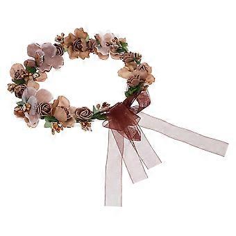Flower Crown Boho Floral Headband with Adjustable Silk Ribbon for Wedding and Festival Wear