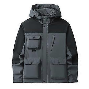 Windbreaker Men's Hooded Jacket with Zip, Ultralight Windproof Rain Jacket, Waterproof Thin Coat, A5 Dark Grey, Size M