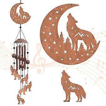 Howling Wolf Wind Chimes Moon Star Iron Bells Memorial Chimes Decorative Metal Bell Creative Hanging Pendants Forest Wind Catcher Wolf Dream Catcher f