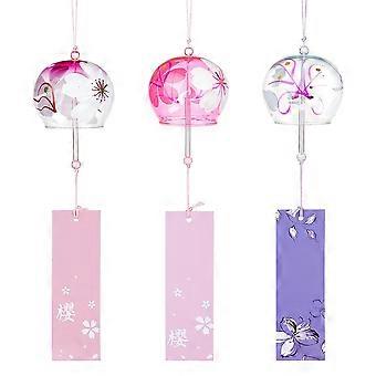 3 Styles Japanese Wind Chimes, Purple, Pink, Blue Cherry Wind Bells Handmade Glass Pendants for Wedding Festival Gift, Garden Window Outdoor or Indoor