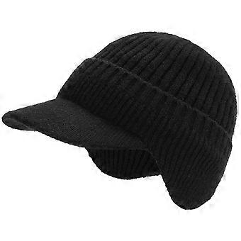 Winter Visor Beanie Hat with Earflaps for Men, Fleece Lined Knit Ski Cap, Warm Baseball Style, Adjustable Size