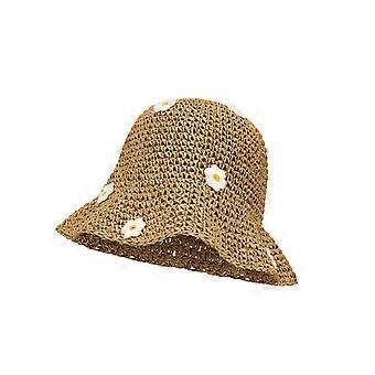 Women’s Foldable Straw Sun Hat - Khaki-White Floppy Bucket Design