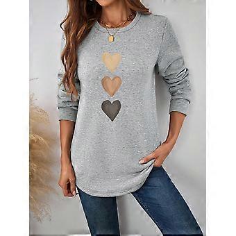 Women's Casual Heart Pattern Thickened Crew Neck Sweatshirt, Apricot Color, Suitable For Autumn/Winter