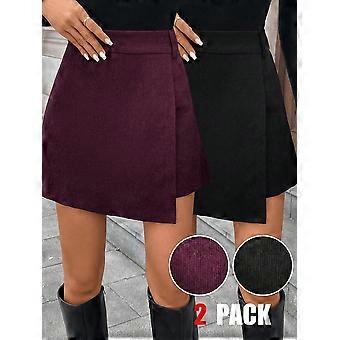 Women's Casual Versatile Solid Color Wrap Mini Skirt, Suitable For Commuting, Autumn/Winter