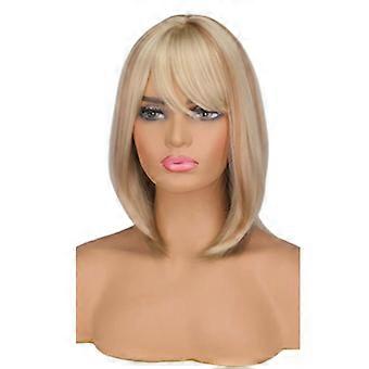 Short Straight Bob Wig with Bangs Heat Resistant Synthetic Hair for Women Brown Blonde Adjustable Cap