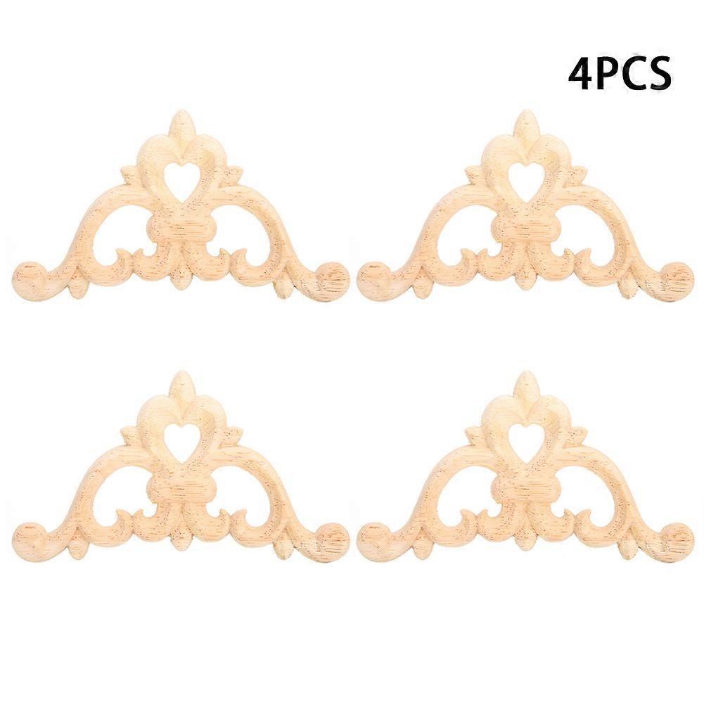 Wood Carved Corner Onlay 4 Pcs Unpainted Cabinet Applique Decal For Furniture Decor