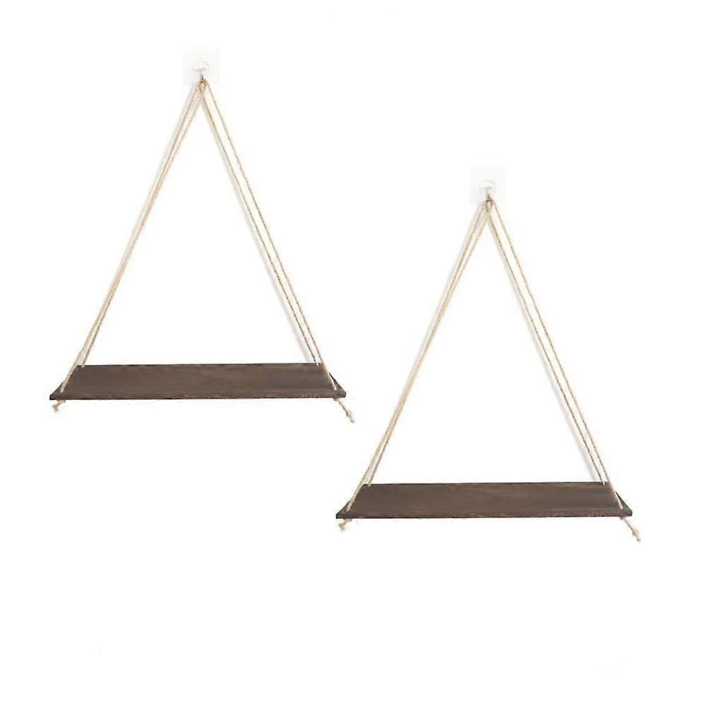 Wood Hanging Shelves Set of 2 for Wall, Macrame Rope Triangle Floating Shelves, Rustic Living Room Bedroom Organizer