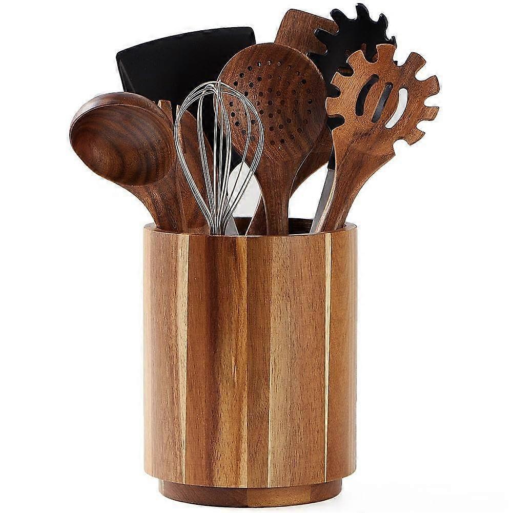 Wooden Utensil Holder 360° Rotating 7.1 Inch Acacia Wood Kitchen Utensil Organizer for Farmhouse Countertop Decor