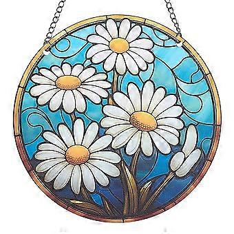 Flower Suncatcher Stained Glass Window Hangings Acrylic Window Suncatcher Panel Decor White Blue Flower Wall Art Stained Glass Sun Catcher for Windows