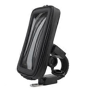 Motorcycle Rearview Mount Cellphone Stand Waterproof Motorbike Phone Bag with USB Port Phone Mount Holder(Black) Chronus