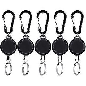 5-pack Retractable Keychain Badge Holder Reel, Black Id Badge Holder With Steel Wire Rope
