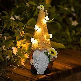 Solar Garden Gnome Statue Decor Holding Sunflower Gifts, Outdoor Garden Decor with Solar Bee Lights